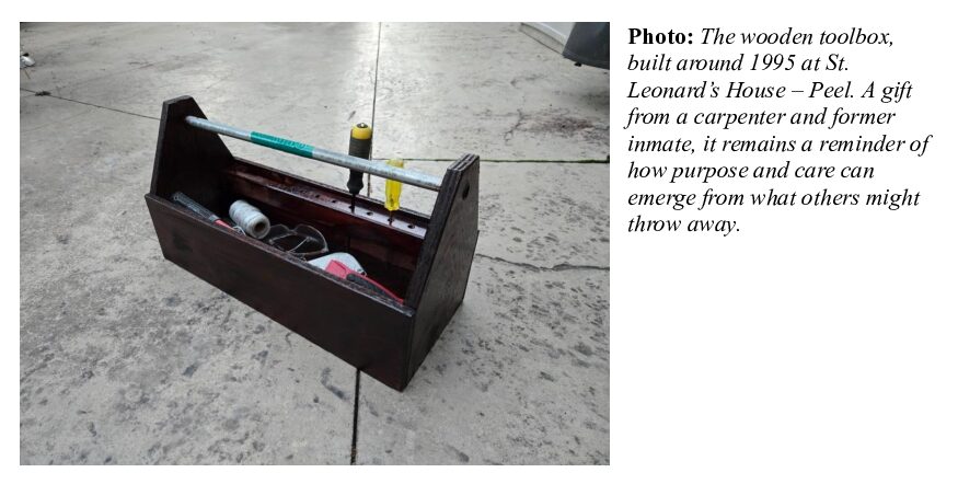 The man who made the box had been a carpenter before prison. He carried himself with the quiet steadiness of someone who understood the language of wood and tools—who had once shaped things with purpose. I don’t recall exactly how it began, but at some point we decided I would receive a toolbox, to help me with my projects. Perhaps it was a gesture of gratitude, or perhaps it was his way of remembering what it felt like to build something again, something that might outlast him.